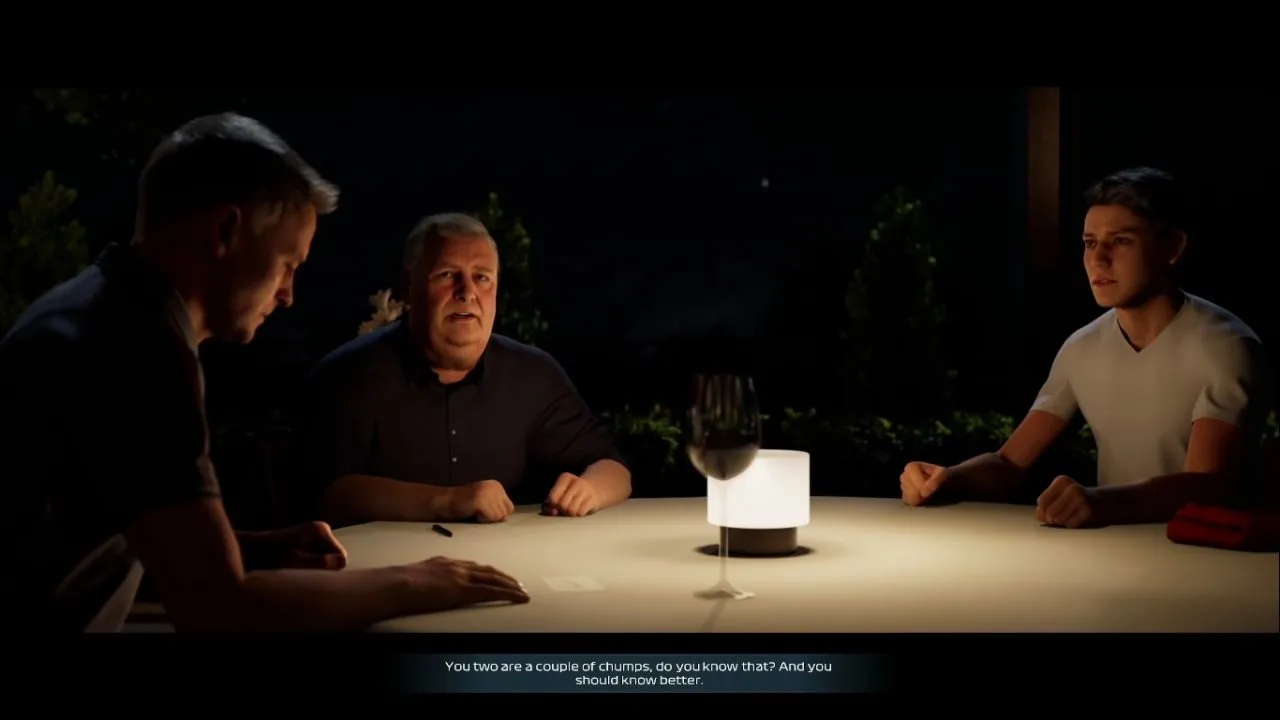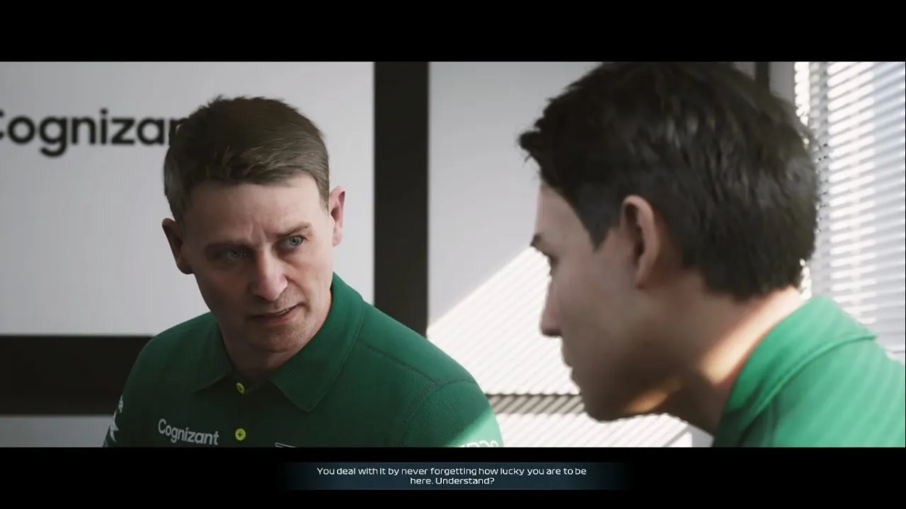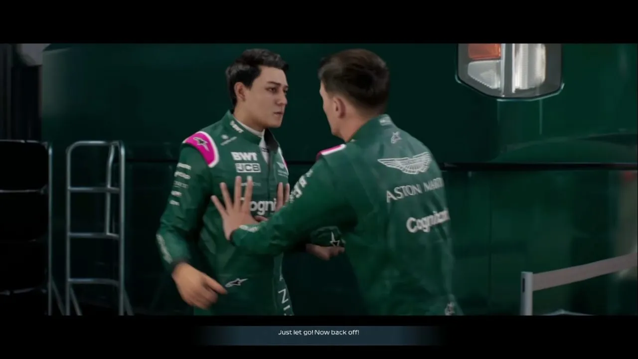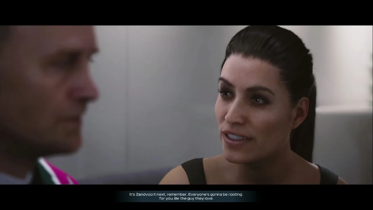 Las cinemáticas están muy bien hechas y los diálogos están bien escritos salvo las llamadas con la mamá de Aiden, (lo siento, son pésimas). Fuera de eso, el juego no tiene mucho que ofrecer en cuanto a jugabilidad. Al final estamos hablando de un juego de F1, no de un Forza.