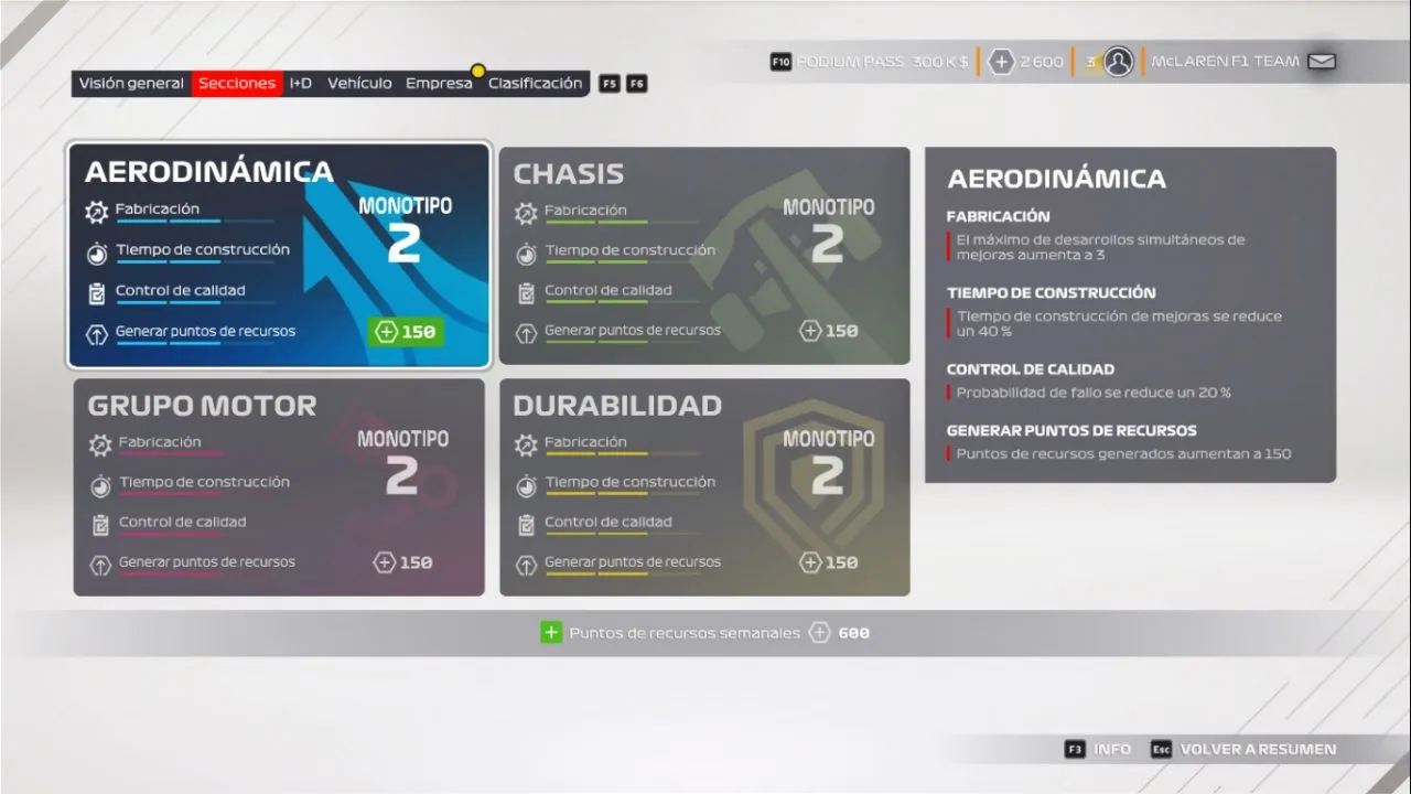 Esperemos que para las próximas entregas si se pueda ver una mejora considerable en esta sección, especialmente para el año que viene que se vienen tantas novedades en la temporada de F1 real.