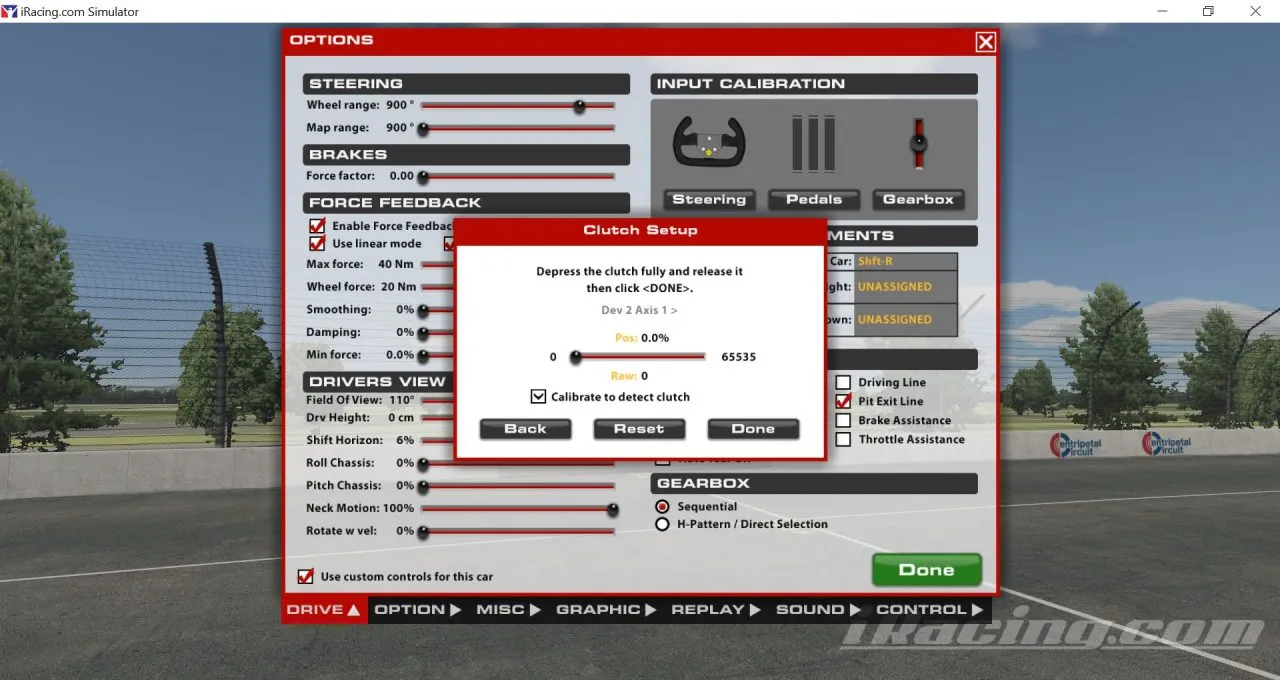 En la configuración de iRacing cuando nos pregunte por el pedal del embrague accionamos la leva maestra (en este caso la derecha) que queremos usar como embrague completo. Las dos levas analógicas actúan sobre el mismo input (entrada) así que unicamente con eso, la leva izquierda, configurada por defecto al 50% del total, ya debería mostrarse como un «punto» de mordida para la salida al soltar la leva maestra. Se pueden configurar cual de ellas es la maestra, el punto de mordida o el recorrido necesario en el apartado Opciones de la aplicación RC Manager.