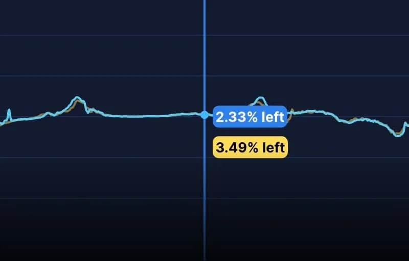 Al comparar una vuelta de referencia con tu tiempo base de vuelta, puedes seguir tu delta en tiempo real. El gráfico «Delta» te muestra el tiempo ganado o perdido en cada punto de la vuelta. Muestra la diferencia total de tiempo, o delta, así como resúmenes de cada valor de telemetría, incluyendo velocidad, acelerador, freno, dirección y marchas. Este gráfico facilita ver todos los valores en un solo lugar.