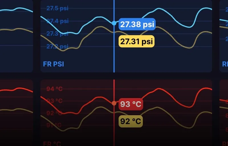 - Gráficos de temperatura y presión de los neumáticos