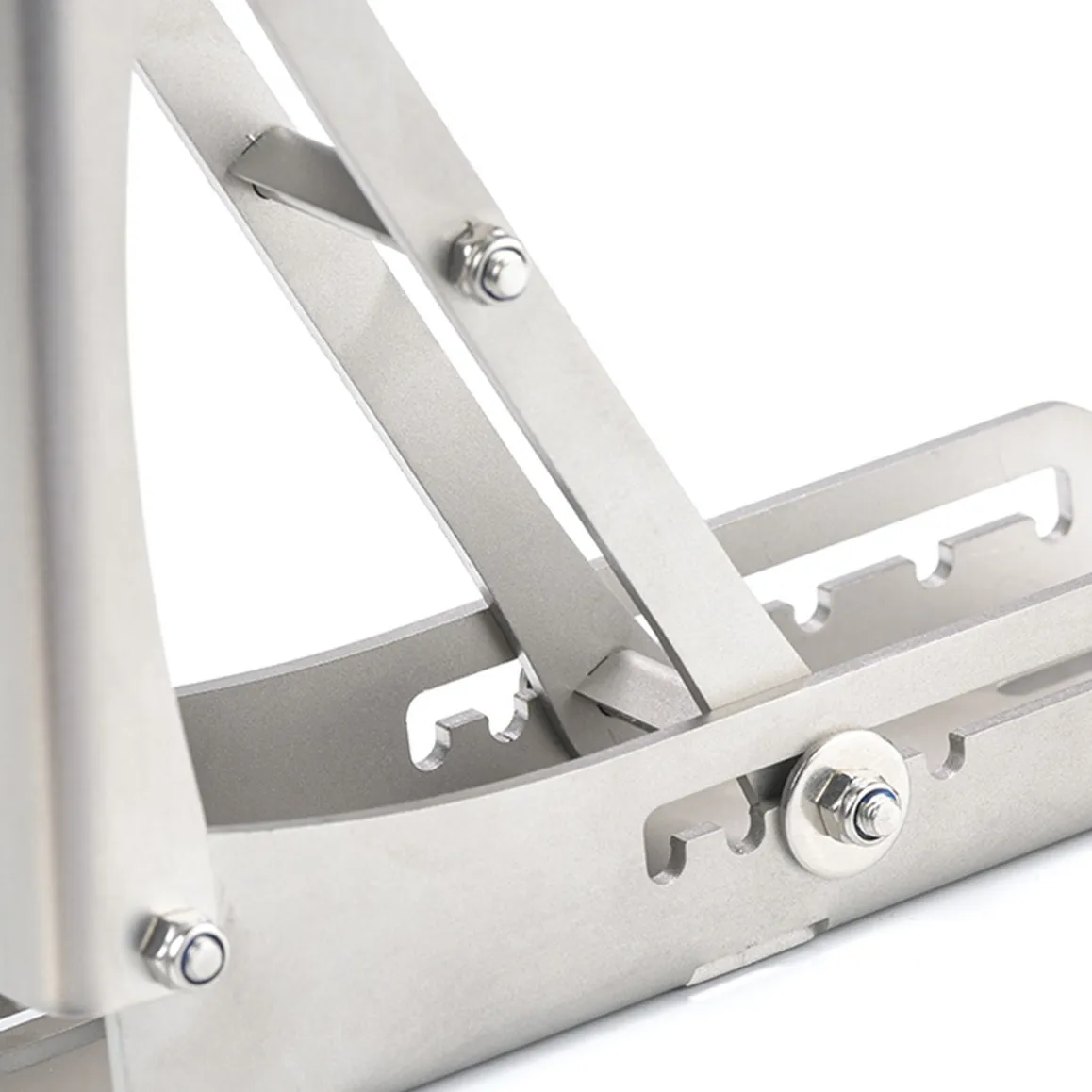 El Rest Pedal está hecho de acero inoxidable de 4 mm cortado con láser, lo que resulta en un pedal de descanso súper fuerte para cualquier simulador. Este reposapiés proporciona mucha resistencia en direcciones longitudinales y laterales. Usar el Rest Pedal como apoyo para salir de tu simulador o para empujarte hacia tu asiento no es problema en absoluto.