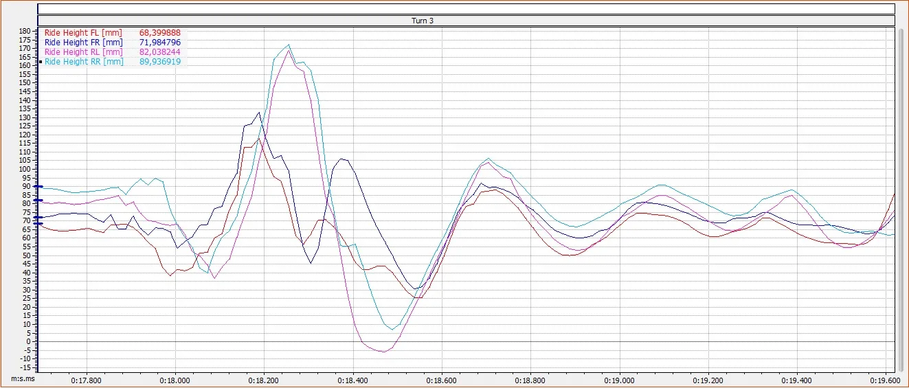 Ejemplo de la variación de la altura del vehículo en una curva en Motec