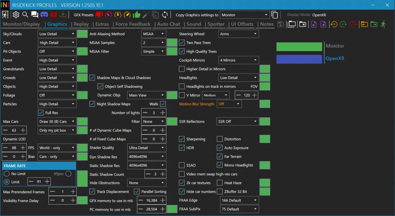 | Aberraciones cromáticas | Presentes en casos puntuales (por ejemplo, botones verdes muy brillantes en UI de iRacing), pero no afectan a la experiencia general de juego. |