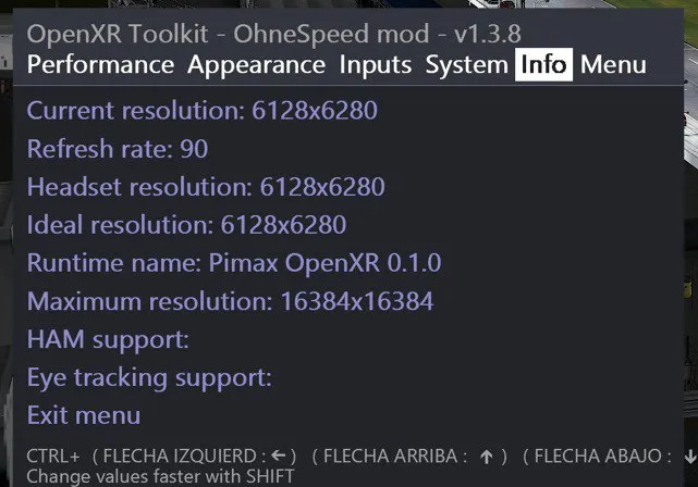 | Resolución por ojo (panel vs render) | 3840 x 3840 por ojo vs 6.280 x 6.280 px por ojo (modo High o 1.0). Requiere una GPU extremadamente potente para moverla a resolución nativa. |