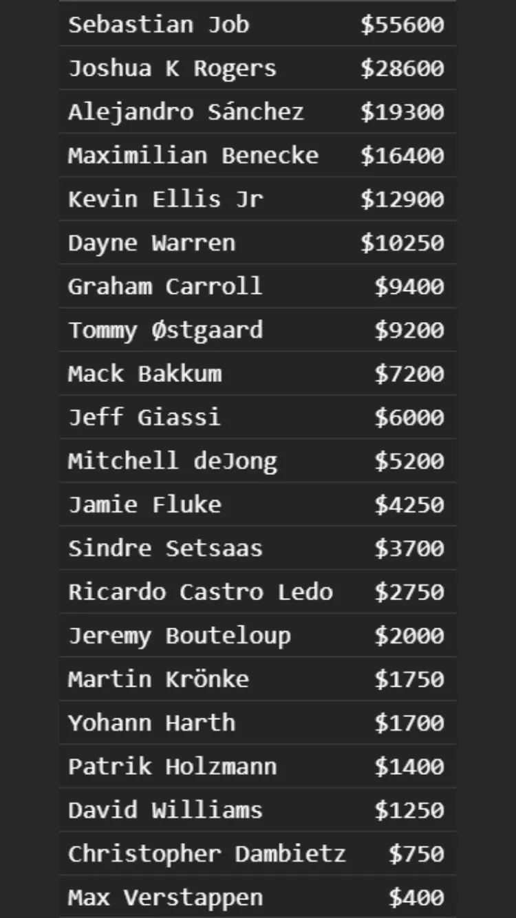 La clasificación final de la Supercopa Porsche TAG Heuer Esports 2020 es la siguiente. Los 20 mejores pilotos del campeonato volverán a la serie en 2021: